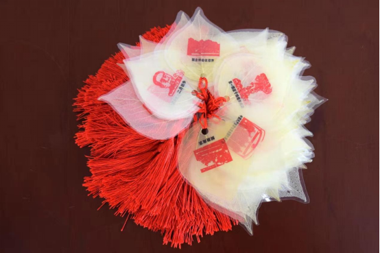 李荣代表化学与化工学院学工支部将书签赠与校史馆,党政办主任温世明、副主任侯素馨代表学校接收了捐赠。叶片精挑细选后,经过化学处理,成为叶脉书签。每一张书签上都印有一副图片,图片选取1921年至2021年一百年来重大事件,共计100张,每一张系列书签都融入了学生们对党的无限热爱、对祖国的美好祝愿。