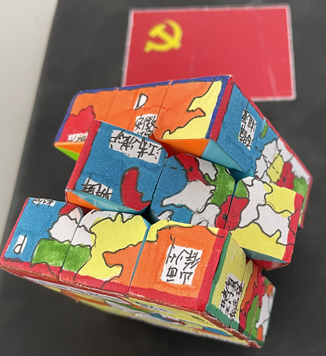 本次共展出33幅地图作品,作品题材丰富,形式多样,作品涵盖了党的百年历程中各个重要阶段的重要事件,有单幅作品,也有系列图册,有传统纸质地图,也有刺绣地图,还有“文化衫”“地图魔方”等创意作品,所有图件全部为原创、手工完成。