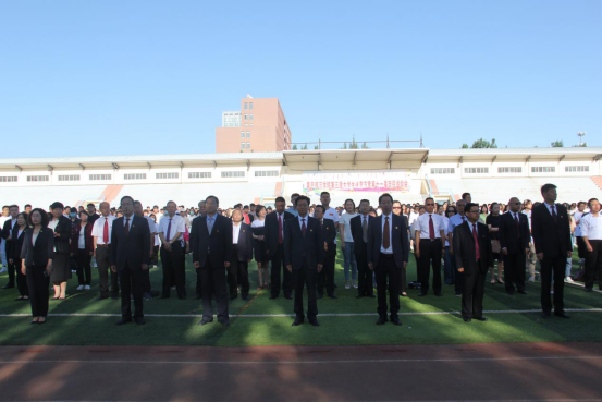 迎着七点半的朝阳,全体师生肃立,注视着五星红旗同旭日一同冉冉升起,师生齐唱国歌,用嘹亮的歌声抒发心中的爱党情、爱国情。
