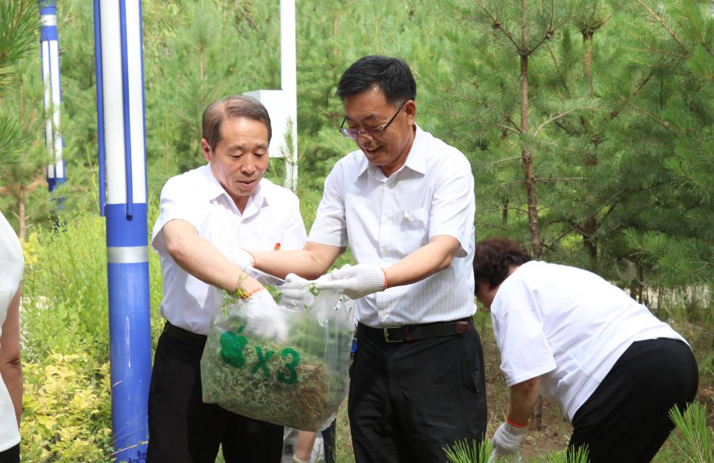 劳动过程中,党员干部们分工协作,充分发挥不怕脏、不怕累的精神,拔蒿草、捡垃圾……,经过努力,周边的杂草、垃圾等基本都清理干净。