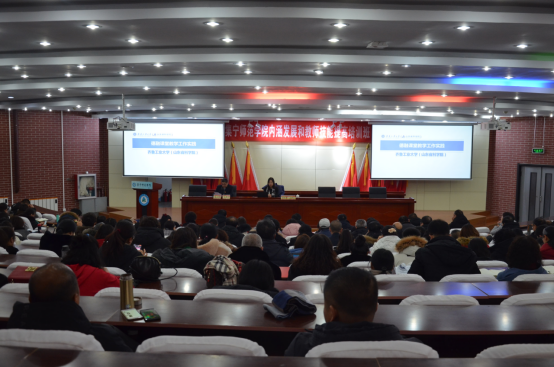 为切实做好学校课程思政工作,深入推进课程思政建设,按照“不忘初心、牢记使命”主题教育部署要求,1月3日上午,beat365在线唯一官网邀请齐鲁工业大学教务处副处长李红霞来校作“课程思政”专题培训。学校党委副书记、校长朱玉东,党委委员、副校长许卫,党委委员、副校长梁政,副校长李凤斌,党委委员、宣传部部长张富,党委委员、统战部部长张秀文,党委委员、人事处处长李景杰出席会议。全体教学部门人员、行政部门兼课人员、党政管理部门及教辅部门科级以上干部参加了本次培训。培训会由教务处处长姚玉阁主持。