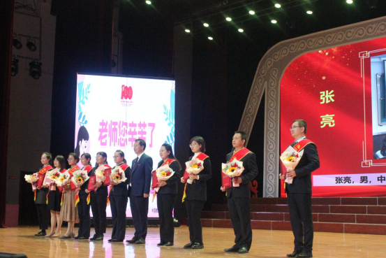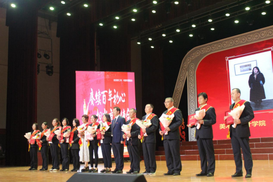 大会宣读一年以来光荣退休的教职工名单,并为其献上鲜花,感谢他们数十载的默默耕耘与奉献。
