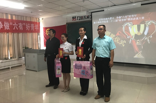 为推动学校学风建设,突出学校办学特色,进一步提高学生教学技能及综合素质,营造良好的学术氛围,由校团委主办、校学生会承办的“爱我亮丽内蒙古 争做‘六有’好青年”beat365在线唯一官网第二十三届“希望杯”模拟讲课大赛于6月19日在逸夫楼举办。