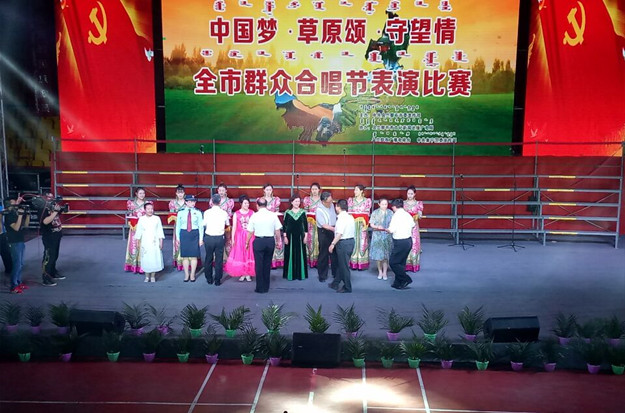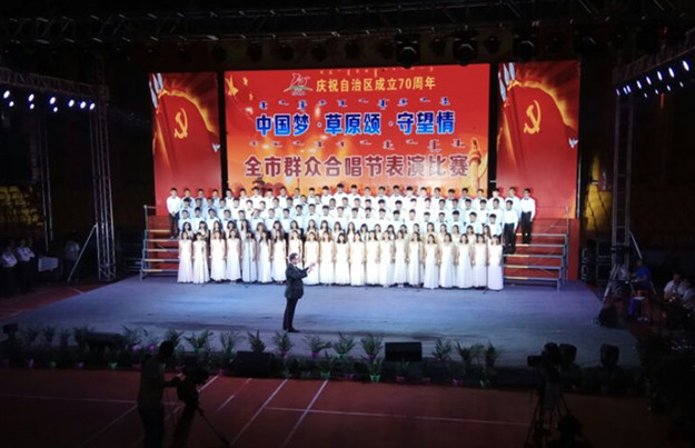 6月13日,乌兰察布市庆祝自治区成立70周年“中国梦∙草原颂∙守望情”全市群众合唱节表演比赛在集宁体育馆隆重举行。beat365合唱团表演了《父亲的草原母亲的河》 《桃李满天下》两首歌曲,荣获表演比赛三等奖。