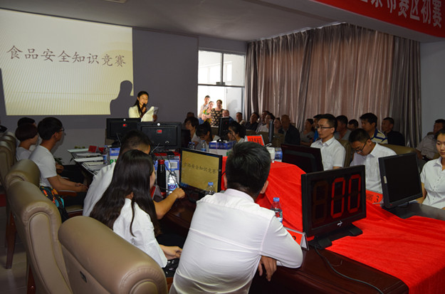 赛前,李荣致欢迎辞。刘鹏宇作重要讲话。他刘鹏宇出,举办高校食品安全知识竞赛活动,是进一步贯彻落实习总书记食品安全的“四个最严”指示精神,是按照自治区“建设食品药品安全内蒙古”的要求,以学习宣传《食品安全法》为主要目的,进一步增强高校广大师生和餐饮从业人员贯彻执行《食品安全法》的自觉性、责任感,牢固树立以人为本的食品安全发展理念,不断提高学校食品安全的保障水平,推动高校以食品安全工作健康发展为目标的竞赛活动。