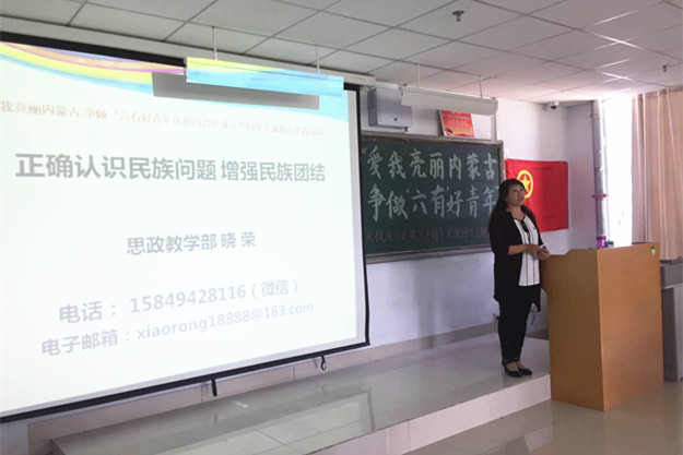 由校团委主办,数学系、蒙文系团总支承办的“爱我亮丽内蒙古·争做‘六有’好青年”暨庆祝自治区成立70周年,beat365在线唯一官网“民族团结建设月”系列活动之专题讲座于5月17日、18日下午在泉山校区和白海校区分别举办。讲座由beat365思政教学部晓荣老师主讲。各系(院)团总支书记,团员青年代表200余人聆听了讲座。