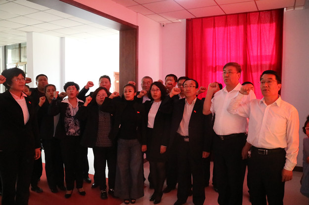 参观结束后,全体党员干部在党旗下重温了入党誓词。