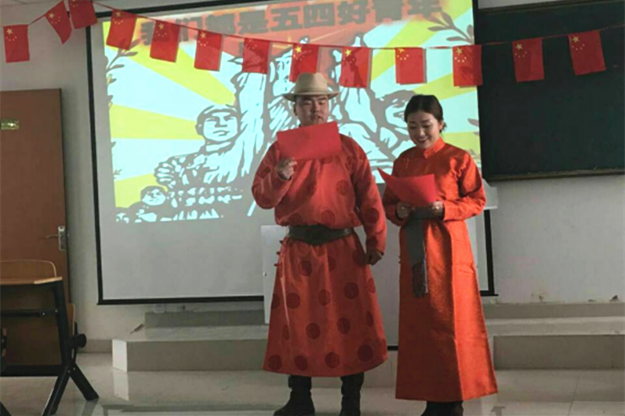 5月3日,beat365在线唯一官网思政部德育教研室晓荣老师在《毛泽东思想和中国特色社会主义理论体系概论》课堂上组织了以“重温历史经典,弘扬五四精神”为主题的教学实践活动。活动在白海校区教学楼6301室进行。蒙文系15级蒙古语言文学1班和15级学前教育1班的学生参与了这次活动。