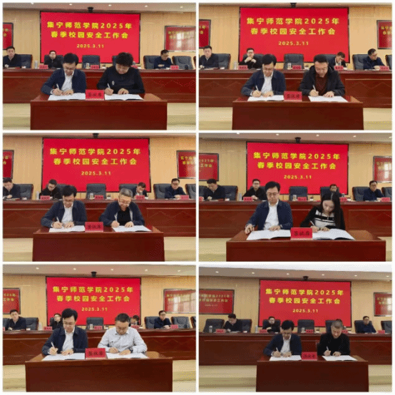 会上,张宝成与签状代表签订了《2025年度校园安全稳定工作领导责任书》和《2025年消防安全领导责任书》。拓俊杰围绕“坚决维护校园政治安全”“持续做好专项整治工作”“全面提高校园安全风险防控能力”等方面就2025年校园安全工作作出安排部署。他强调,要层层压实责任,真正落到基层第一线;要主动担起责任,持续强化督导检查;要营造安全文化氛围,加强正面宣传引导;要畅通信息渠道,加强信息报送工作。