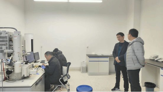 内蒙古自治区矿土土质改性及综合利用重点实验室主任安军伟教授参观国家日用及建筑陶瓷工程技术研究中心听取苗立伟博士对透射电镜实验室的介绍