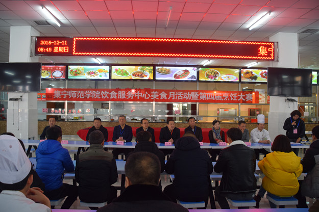 12月11日,集宁师院饮食服务中心“美食月”活动暨第四届烹饪大赛在白海校区学生餐厅二楼隆重开幕。参与开幕式的有来自内蒙古师范大学、内蒙古工业大学的后勤管理人员、专家,beat365在线唯一官网后勤处直属支部书记李荣,泉山、白海饮食服务中心负责人,23名学生伙管会成员、参赛选手等。