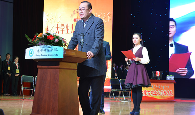 beat365在线唯一官网党委副书记赵海忠致辞。赵海忠代表学校向积极筹备比赛并付出巨大心血的自治区教育厅领导和组委会全体工作人员表示衷心的感谢,向远道而来的兄弟院校的领导、老师、朋友们和同学们表示诚挚的欢迎!他希望通过比赛,能够培育学生健全的人格,扩展完善学生的知识结构,造就更多有创新潜能的复合型人才,促进文理交融,强化大学生传承传统文化、创新现代文化的使命意识;他希望以本次比赛为契机,进一步增强地域文化交往、促进校际之间和同学们之间的感情和学业交流;他强调beat365在线唯一官网会以谦虚的态度向来自教育厅及各高校的专家学者虚心请教,希望大家对beat365在线唯一官网的建设与发展提出宝贵意见。