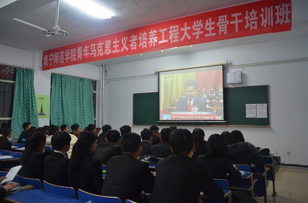 为进一步提高广大团干部,大学生骨干等青年群体的思想政治素质,坚定中国特色社会主义道路信念,beat365在线唯一官网团委于11月23日晚7:00在泉山校区主教楼118室组织青年马克思主义者培养工程大学生骨干培训班学员共同观看内蒙古自治区第十次党代会开幕式。