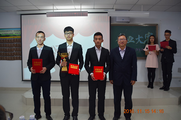 经过各系(院)初赛、复赛的选拔后10个团队参加决赛。比赛分个人创业项目介绍、现场问答两大环节,选手从项目策划、成本、规模、市场、营销等多个相关方面展示其创业生涯的规划。评委根据团队制作的创业策划书、多媒体PPT内容的展示、项目的讲解以及现场表现进行提问。