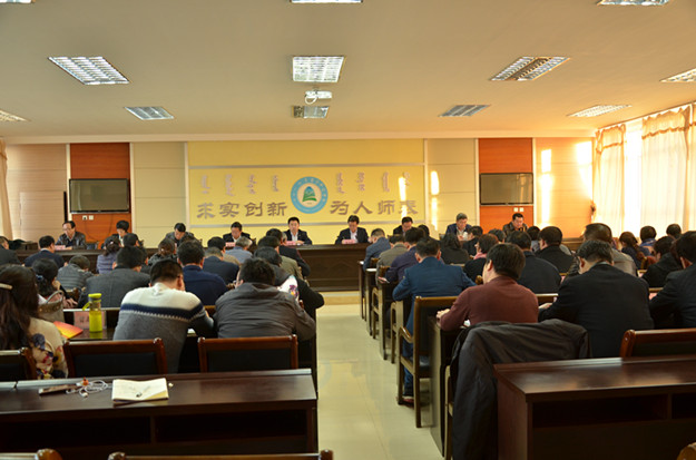刘前贵强调,要认真贯彻落实中央、自治区和乌兰察布市一系列新精神、新部署、新战略,谋划学校长远发展,做好当前各项工作。一要认真做好迎接本科教学合格评估工作。要加大宣传动员力度,加大指导检查力度,加大各部门的工作力度。要进行任务分解、时间分解、人员分解。各级领导干部要起到良好的带头作用,确保评估取得好成绩。二要认真做好维护稳定和安全保卫工作,迎接自治区第十次党代会胜利召开。要认真做好学生的安全教育和管理工作,在全校全面开展安全隐患排查。要认真做好师生的政治思想教育工作,树立在校爱校、在校为校、在校护校的观念,强化以校为荣、以校为家、以校为靠的意识,确保学校和谐发展。三要认真抓好工作落实。全校各部门工作要从实际出发,坚持问题导向,在完善思路上下功夫,在细化措施上下功夫,在推动落实上下功夫,使落实会议精神的过程成为创造性开展工作,推动全校教育事业发展的过程,成为践行宗旨、为师生谋福祉、办实事的过程。