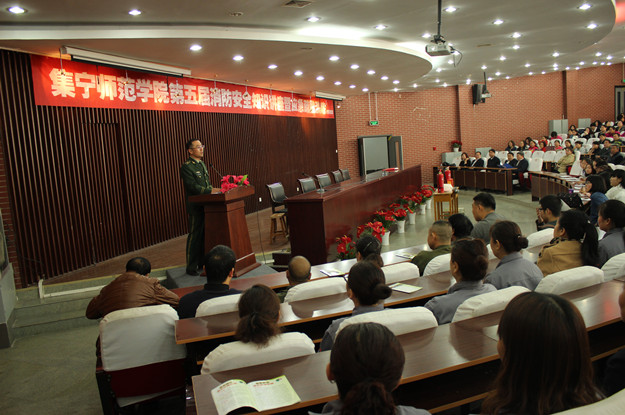 此次活动邀请乌兰察布市消防支队防火处法治科科长刘晓虎、防火处监督指导科科长郭宏伟做了消防安全知识讲座。讲座从消防日常检查、疏散逃生的基本常识、火灾预防和应急处置、消防器材的正确使用等几个方面进行了深入浅出的讲解。并结合各地火灾案例,用“血的教训”警示师生要高度重视消防安全,不断增强消防安全意识,加强消防安全管理,积极主动做好单位及家庭的消防安全工作。
