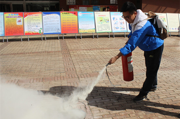 在消防器材使用培训中,保卫处消防科科长白晓龙及保卫处工作人员现场讲解并演示了部分消防器材的使用方法,手把手教授师生如何扑灭初起火源。