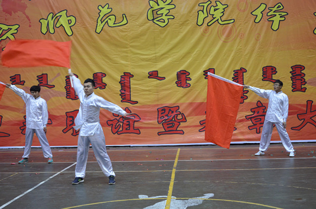 体育系主任王俊平致开幕词。王俊平代表体育系向参加晚会的领导、老师、同学们表示热烈的欢迎。他指出,在过去的一年里,体育系全体师生在校党委行政领导下团结一致、锐意进取,通过同学们的刻苦训练,老师们的辛勤付出,取得了令人可喜的成绩。他向所有老师致以崇高的敬意并为学生取得的成绩表示衷心的祝贺,并希望同学们能够继续保持勤奋、好学、自勉态度,把自己专业知识学好、学扎实,为将来走向社会做好充分的准备。