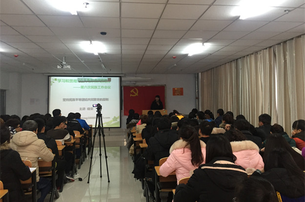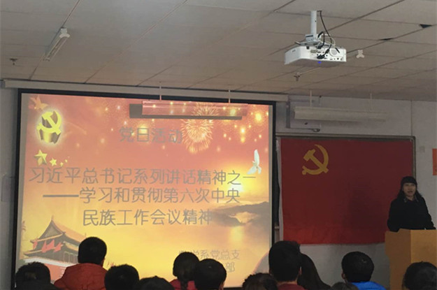 活动特邀思政部教师晓荣围绕第六次中央民族工作会议精神做了专题讲座。重点阐述了习近平总书记关于民族工作的新理念、新思路。数学系党总支书记莎仁格日乐、党总支副书记张宏智出席了活动。学生党支部书记、全体学生党员、入党积极分子共136人聆听了讲座。