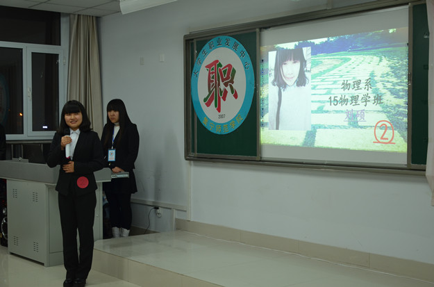 担任比赛的评委老师有就业处处长刘国义,副处长胡志胜、李荣利,经管系副书记张伟,政史系学工办主任田博。参赛选手分别从个人信息、特长爱好、工作经历、专业技能和求职意向等方面作了精彩的ppt展示。评委老师向选手提出针对性的问题,并给予专业性的意见。