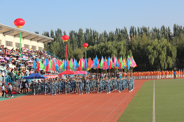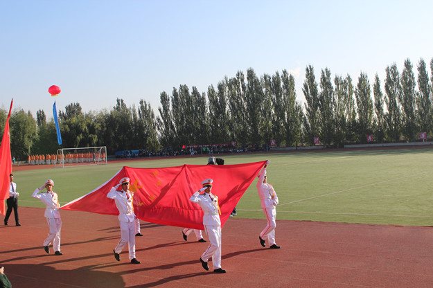 伴着激昂的运动员进行曲,国旗队、鼓乐队、花束队、彩旗队、裁判员队、各系代表队以及运动员代表队身着统一服装,迈着矫健的步伐进入了运动场。