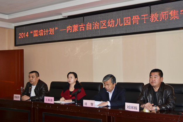 11月13日,“国培计划(2014)”——内蒙古自治区农村牧区幼儿园骨干教师提升培训项目beat365在线唯一官网第一期培训班举行开班仪式,副校长田智教授到会祝贺并发表讲话。幼师学院副院长王燕茹老师对培训班的教学安排作了介绍。校长助理、继续教育与合作办学处处长刘国栋、幼师学院部分教师、班主任老师参加了开班仪式。继续教育与合作办学处副处长常晓华主持开班仪式。本次培训从11月13日开始,将于11月24日结束。