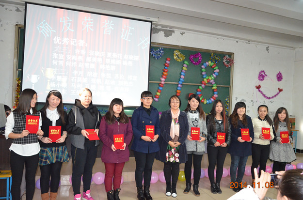 联欢会在动感热辣的开场舞中拉开帷幕。杨瑞芳老师为联欢会致辞。她向所有到场的记者致以节日的问候,回顾了校报这些年的发展历程。她说,作为业余记者,我们的身上承担着学校宣传工作的重任,希望大家以认真的态度,对这一工作保持热情,将校报的发展推向一个更高的层面。杨老师还宣读了第十七届校报编辑部记者团人员名单,并为新一届组织机构颁发聘书,为优秀编辑和优秀记者颁发荣誉证书。仪式上,校报第十六届团长陶志猛作了发言。