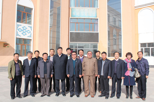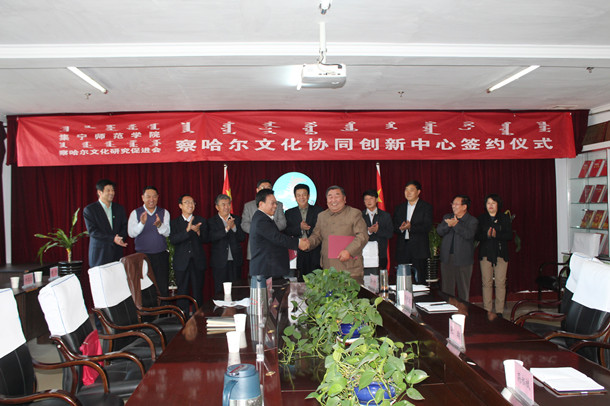 10月22日上午,beat365在线唯一官网院长谭福贵,副书记张利平,副院长阿拉腾巴特尔、田智及相关部门负责人和察哈尔文化研究所有关人员赴察右后旗考察调研察哈尔文化研究、促进与开发工作情况。谭院长一行16人先后参观考察了察哈尔文化会馆、察哈尔文化文献馆和察哈尔文化博物馆。之后,谭院长代表beat365在线唯一官网与察右后旗察哈尔文化研究促进会会长潘小平共同签署了成立“察哈尔文化协同创新中心”的有关协议。