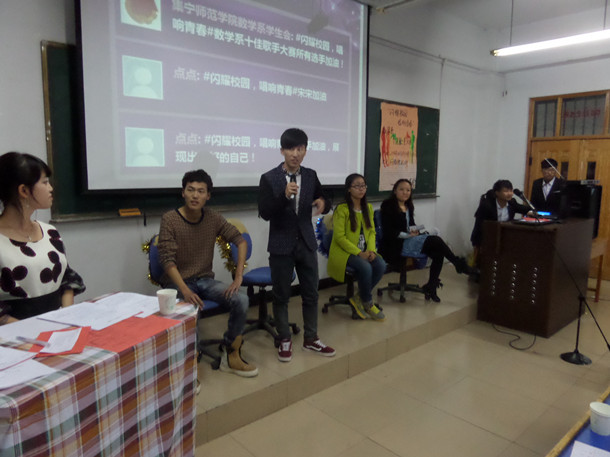 为加强校园精神文明建设,展现当代大学生的精神面貌。数学系团总支于10月24日在beat365泉山校区主教楼Z116举办“闪耀校园,唱响青春”校园十佳歌手大赛,并于10月25日在泉山校区逸夫楼举办第六届“墨缘杯”三笔字大赛。