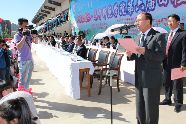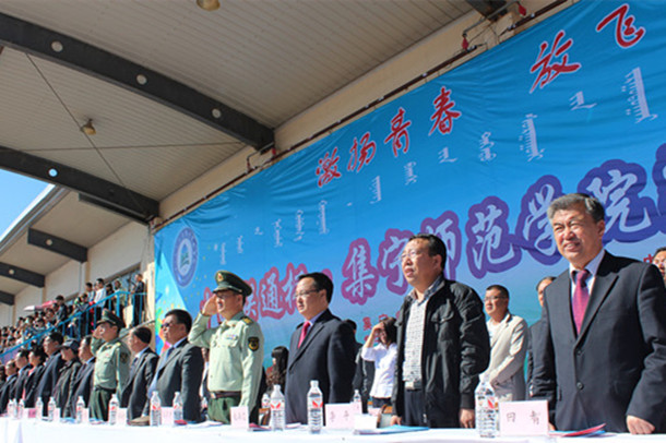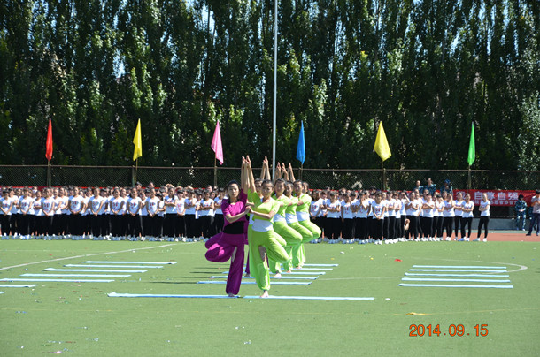 运动会开幕式上,生物系100名女生献上了精彩的太极拳表演,音乐系表演了女声独唱——《春天的芭蕾》,师生五重唱——《阳光路上》,音乐系空乘专业和物理系同时进行了礼仪成果展示和航模展示,蒙文系带来了别具风情的安代舞表演,最后,幼师学院进行了舞韵瑜伽和大型团体操表演。