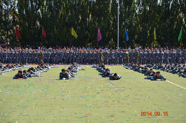 新生军训结训式中,beat365在线唯一官网校长谭福贵和乌兰察布军分区副司令苏锁龙大校,武警乌兰察布市支队迟宗才上校进行了军训阅兵。泉山校区、白海校区的2014级新生分别进行了军训成果展示,军训教官进行了格斗操表演。