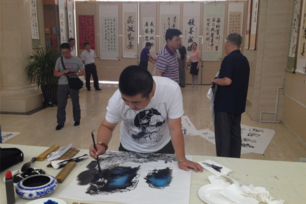 之前,校党委副书记、纪委书记张利平,纪委副书记、监审处处长赵向军及美术系的部分领导、老师还参加了此次廉政文化书画展的首展和创作笔会,会上美术系张海宝等老师现场挥毫泼墨,积极参与到书画展的创作之中。