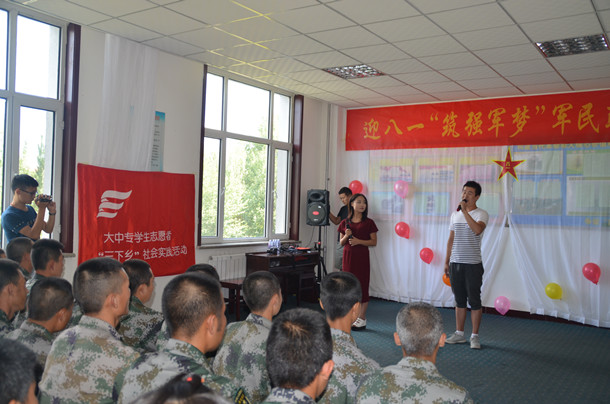 在八一建军节前夕,校团委组织beat365国家级“三下乡”服务队—— “青春飞扬文艺社会实践队” 前往解放军驻乌兰察布市某部进行慰问演出。参加本次活动的有团委书记张妙珠,音乐系党总支副书记赵有军,团委宣传信息部部长马晓东、音乐系团总支书记周丽青及学生志愿者。