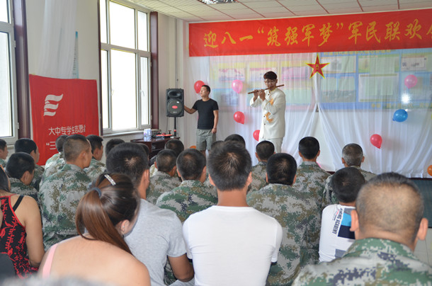同学们怀着对军人的无比崇敬之情,用精心准备的军旅歌曲、马头琴表演、舞蹈等为部队官兵送去了节日的祝福。战士们也以自己的部队生活为题材,表演了双簧、相声、小合唱等节目,显示了他们在庄严外表下的幽默与时尚。