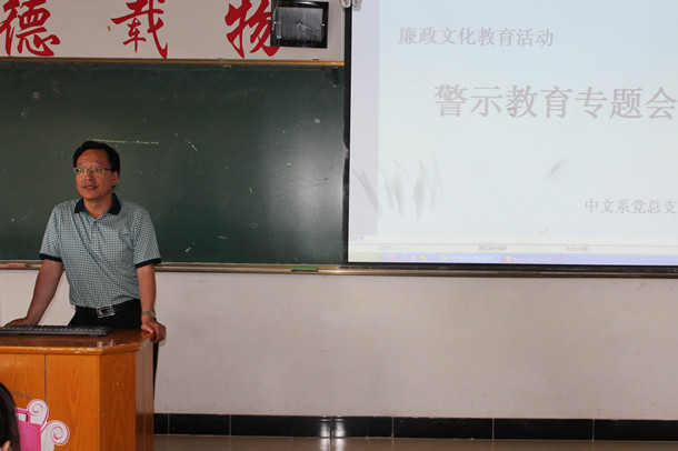 6月27日下午,中文系党总支组织全体教职工和部分学生党员观看警示教育片《背叛与忏悔》,校纪检委委员沙仁格日勒应邀出席。