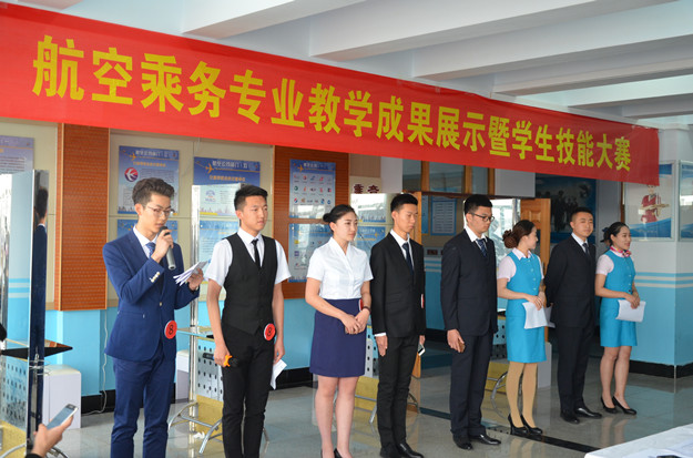 本次大赛共分为航空礼仪形象和语言能力竞赛两大项。其中,航空礼仪形象又分为领花、领带和化妆三小项;语言能力竞赛分为规定内容发言、知识竞答和英语问答三小项。比赛过程中,同学们表现积极,从容参赛,以出色的表现完成了比赛。