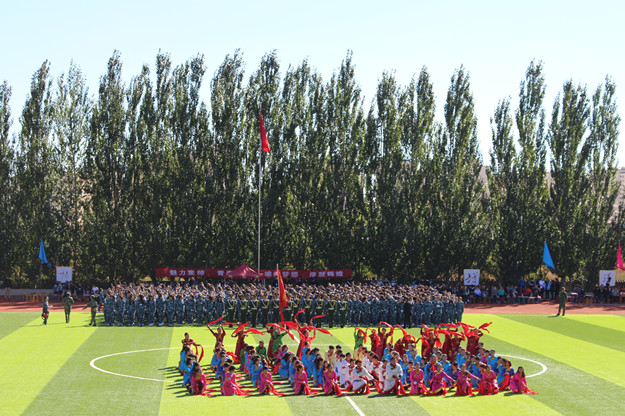 开幕式上还进行了文艺演出。生物系、体育系的同学带来了凝聚我国传统文化精髓的太极拳表演;蒙文系的同学带来了颇具民族风情的安代舞表演;音乐系空乘专业的学生表演了青春靓丽的团体操《展翅飞翔》;由2016级新生表演的军训操气势恢宏,将演出推向高潮。