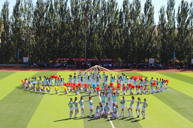 党委书记刘前贵宣布本届运动会开幕。整个运动场上空飞鸽展翅,彩球飘扬,礼炮轰鸣。