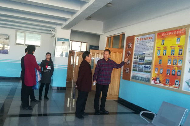 座谈会后,黄中、王汉君、武俊芳陪同张利平一行参观和查看了乘务系的党员活动室及学生活动图片展。