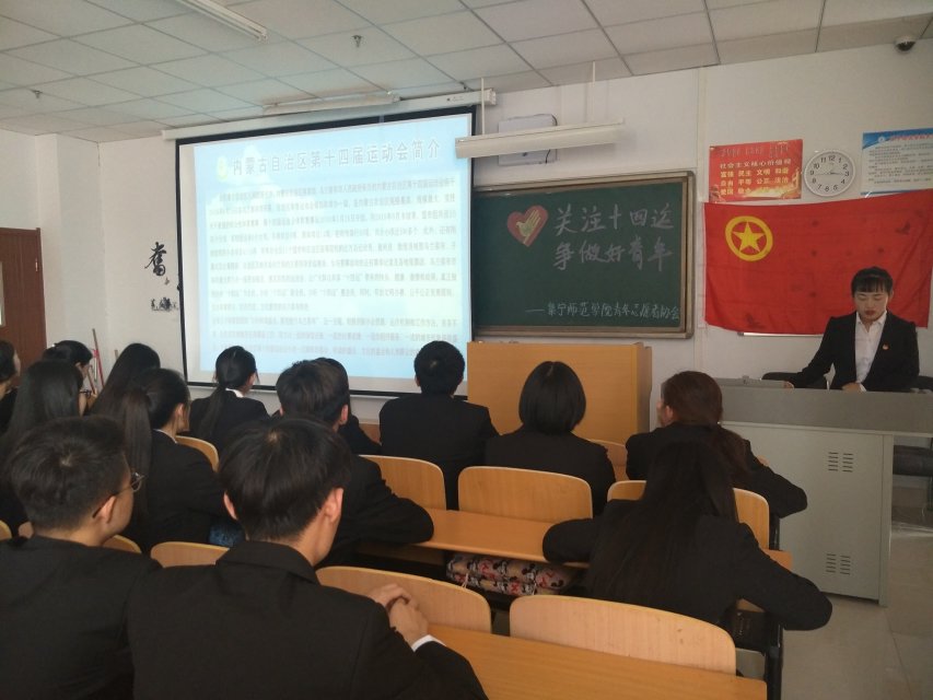 为迎接将于2018年8月18日在乌兰察布市开幕的内蒙古自治区第十四届运动会,3月29日beat365在线唯一官网青年志愿者协会在逸夫楼101室开展“关注‘十四运’ 争做好青年”主题活动。
