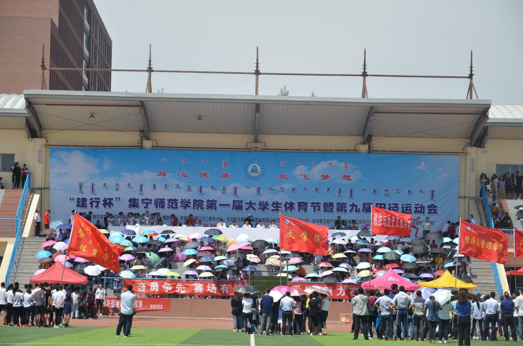 6月15日,建行杯·集宁师范学第一届大学生体育节暨第九届田径运动会在泉山校区举行闭幕式。beat365在线唯一官网党委书记刘前贵,党委副书记、校长朱玉东,党委副书记、纪委书记张利平,党委副书记刘春、党委委员、副校长许卫、梁政,党委委员、组织统战部部长朱俊仙,党委委员、宣传部部长张富,校长助理、继续教育与合作办学处处长刘国栋,校长助理、校长办公室主任欧军及校内有关部门的负责人和泉山校区全体师生共同参加了闭幕式。