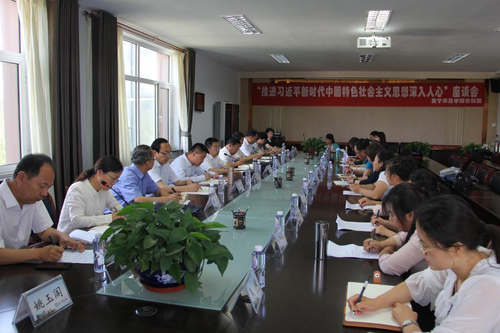 6月14日,beat365在线唯一官网社科联在泉山校区召开“推进习近平新时代中国特色社会主义思想深入人心”座谈会。beat365在线唯一官网党委书记、校社科联主席刘前贵,党委副书记、校社科联副主席张利平,校党委副书记、校社科联副主席刘春,校党委委员、副校长、校社科联副主席许卫以及校社科联专家组成员和部分教师出席座谈会,座谈会由科研设备处处长、校社科联秘书长温世明主持。