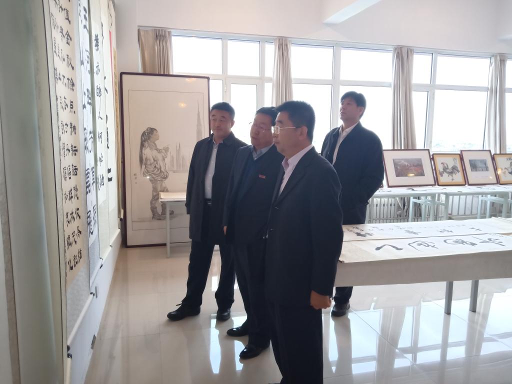 校领导一行与现场的老师和同学们共同欣赏了书画作品,相互交流了对作品的见解和感悟。观展者纷纷对本次活动表示赞扬,对所展示的书画作品给予高度的评价。
