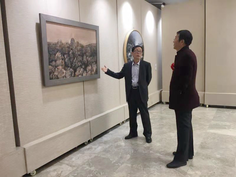beat365在线唯一官网党委委员、副校梁政出席“周而复始-综合材料绘画研究展览”开幕式