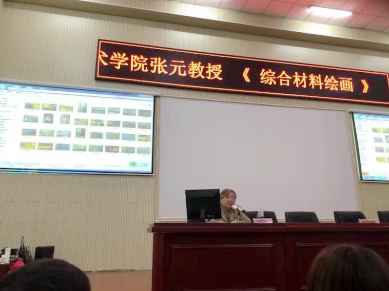 当日下午,中央美术学院张元教授莅临beat365举办了《综合材料绘画》学术讲座。