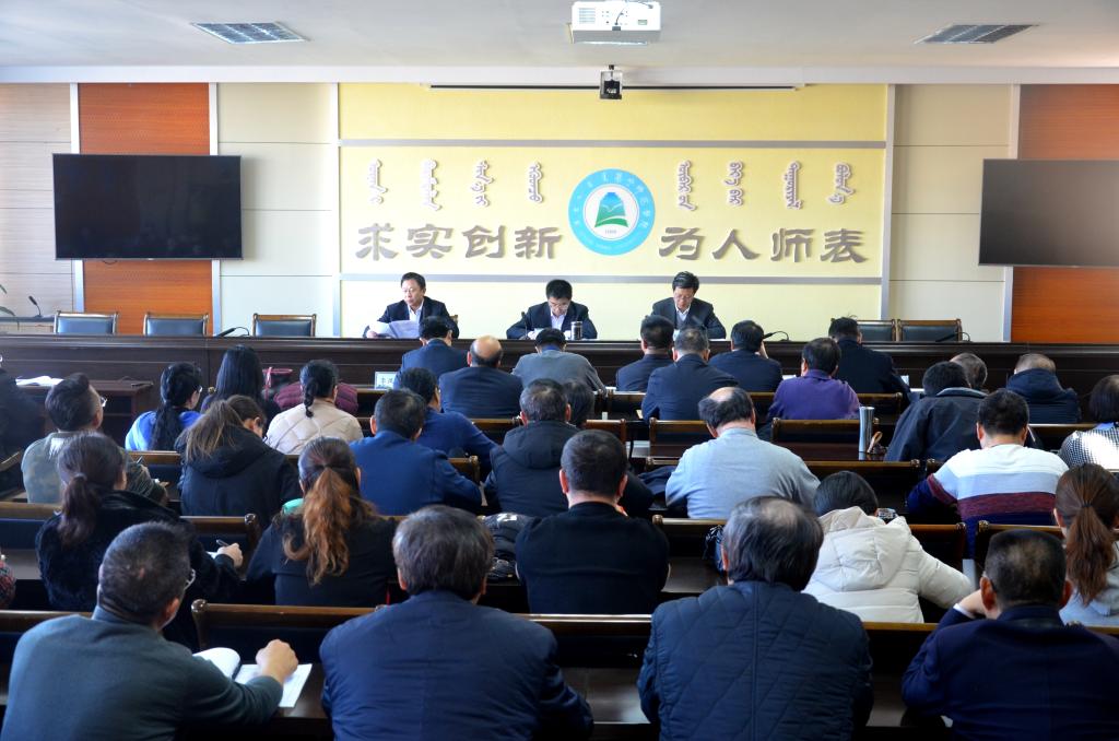 首先对近期开展的环节干部调整工作进行了总结。他指出,此次环节干部调整是学校两委换届前进行的一项十分重要的工作。学校党委在环节干部调整过程中,以习近平新时代中国特色社会主义思想为指导,深入贯彻落实党的十九大精神,认真贯彻执行中央新修订的《党政领导干部选拔任用工作条例》、中共中央办公厅印发的《事业单位领导人员管理暂行规定》、自治区党委办公厅印发的事业单位领导人员管理暂行办法、自治区党委组织部、自治区党委高校工委、乌兰察布市委组织部有关干部选任方面的政策法规,特别是选拔培养新时期优秀年轻干部的要求,认真落实自治区党委第五巡视组巡视反馈意见,坚持正确的用人导向,提高选人用人公信度,以“优化结构、提高素质、促进交流、激发活力”为目标,坚持“信念坚定、为民服务、勤政务实、敢于担当、清正廉洁”好干部标准,努力造就一支适应学校事业科学发展需要、结构合理、素质优良、求真务实、充满活力的高素质干部队伍。按照民主集中制原则,根据工作岗位需求,遵循“该用谁”而不是“谁该用”的要求,充分发扬民主,进行民主测评推荐,进行考察考核,党委会议集体决定。在干部的调整过程中,充分考虑了年龄结构、性别结构、职称结构、学历结构、民族结构、党派结构、群众认可度、岗位需求、干部特长、学校历史沿革等因素。干部调整工作得到了全校教职员工的大力支持和积极配合,各项工作进展顺利,做到了思想不散、秩序不乱、工作不断。干部调整工作的顺利进行,是校党委坚强领导的结果,是全校教职员工大力支持的结果,是参与干部调整的全体工作人员认真细致严谨工作的结果,是转任非领导职务的老同志的深切理解和积极支持的结果,我代表学校党委向转任非领导职务的老干部、老同志表示崇高的敬意和深深的感谢!