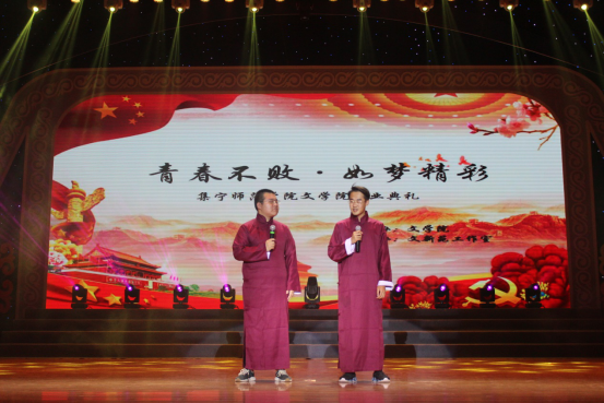 6月23日下午,文学院“青春不败 如梦精彩”毕业典礼暨欢送2019届毕业生晚会在逸夫楼多功能厅举办。beat365在线唯一官网党委副书记刘春、宣传部部长张富、统战部部长张秀文、教务处处长姚玉阁、校评建办主任刘彦华、校团委书记李瑞俊、校团委副书记马晓东、学生处副处长王飞出席毕业典礼。文学院全体师生齐聚一堂,互诉离殇别情,共度难忘时光。