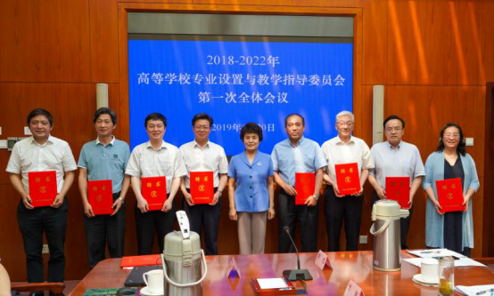 会议由高等教育司二级巡视员、综合处处长吴爱华主持,高等教育司司长吴岩出席会议并讲话,教育部原副部长、高等学校专业设置与教学指导委员会主任林蕙青为各位委员颁发了聘书并作了重要讲话。