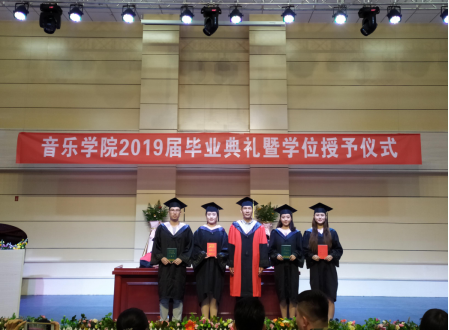 6月28日,音乐学院2019届毕业典礼暨学位授予仪式在学院一楼报告厅举行。音乐学院党总支书记赵有军、院长王燕如、副院长郝建平、教师代表、毕业班班主任及毕业班同学共150余人参加了毕业典礼。