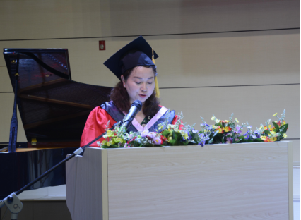 毕业典礼上,音乐学院院长王燕如向2019届全体毕业生致以热烈祝贺,向付出辛勤劳动的全体教师们表示衷心感谢。王燕如院长代表学院为全体毕业生送出寄语:四年时间虽然短暂,但它是人生中最美好时光的浓缩,毕业的离歌即将奏响,希望同学们能够更加勤奋努力,闯出一片崭新的天地。